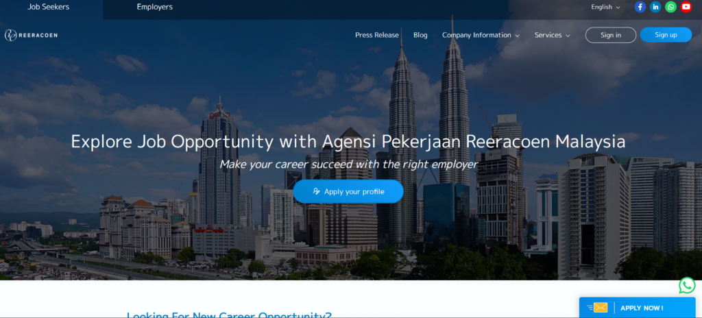 Reeracoen has served more than 7,700 corporate partners in over 5 countries across Asia. Established in 2011, Agensi Pekerjaan Reeracoen Malaysia has been serving various employers and job seekers of different industries across Malaysia, proving to be a well-rounded recruitment agency with a track record.